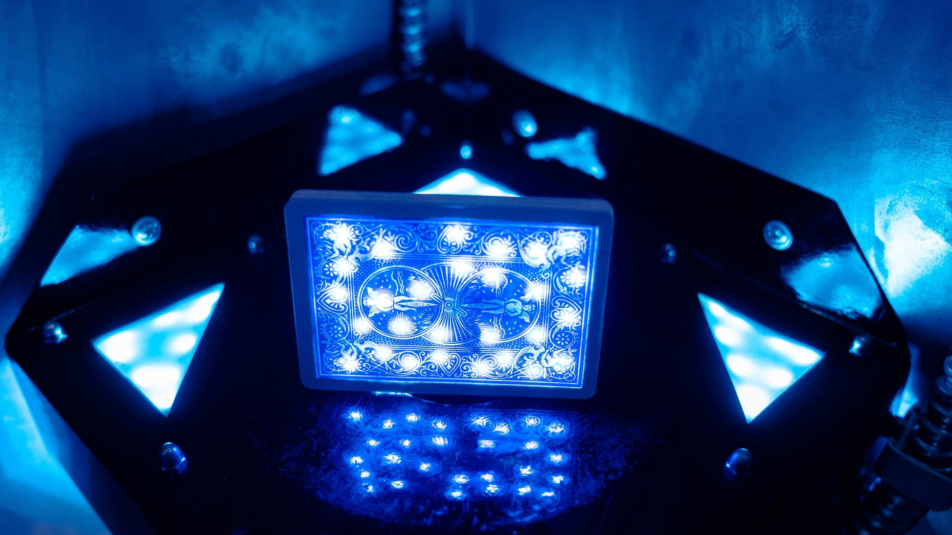 दर्शक जहां भी खड़ा होता है, वह डिवाइस को कभी नहीं देख पाएगा, क्योंकि यह ताश के पत्तों के एक साधारण डेक के अंदर छिपा होता है। चाल का प्रदर्शन तब भी किया जा सकता है जब दर्शक पूरी तरह से आपके आस-पास हों।